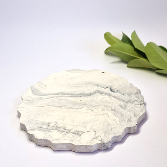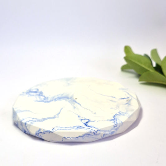 Blue and White Marbled Geometrical Incense Holder | Candle Tray